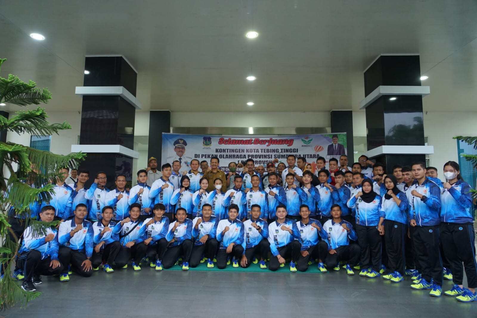 Pj Wali Kota Tebing Tinggi, Muhammad Dimiyathi, S.Sos, M.TP secara resmi melepas atlet Kota Tebing Tinggi yang akan mengikuti Pekan Olahraga Provinsi Sumatera Utara (Porprovsu) XI Tahun 2022, Senin (24/10/2022) di Pelataran Parkir Balai Kota Jalan Sutomo.