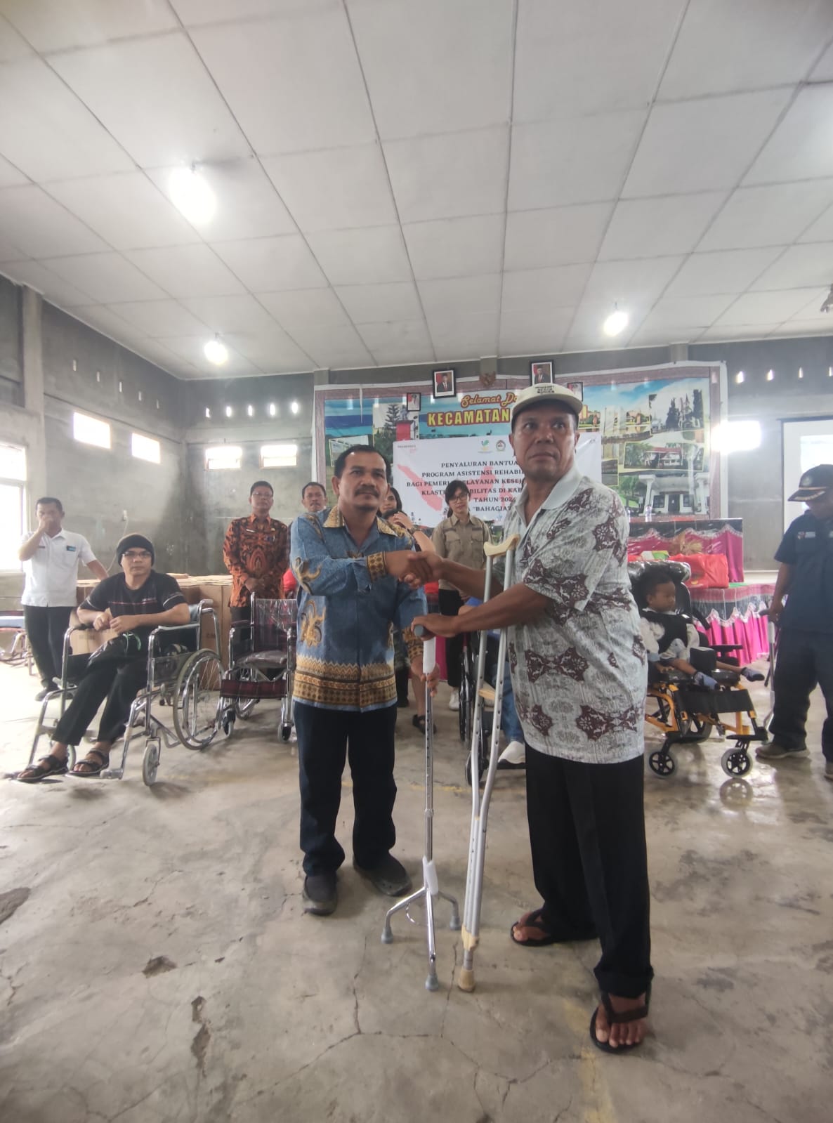 Unit Pelaksana Teknis (UPT) Kementerian Sosial Republik Indonesia Sentra Bahagia Medan menyerahkan bantuan berupa alat bantu disabilitas, sembako dan nutrisi kepada 99 orang warga Toba penyandang disabilitas. Penyerahan ini dilakukan di Aula Kantor Camat Laguboti, Kabupaten Toba, Jumat (28/06/2024).